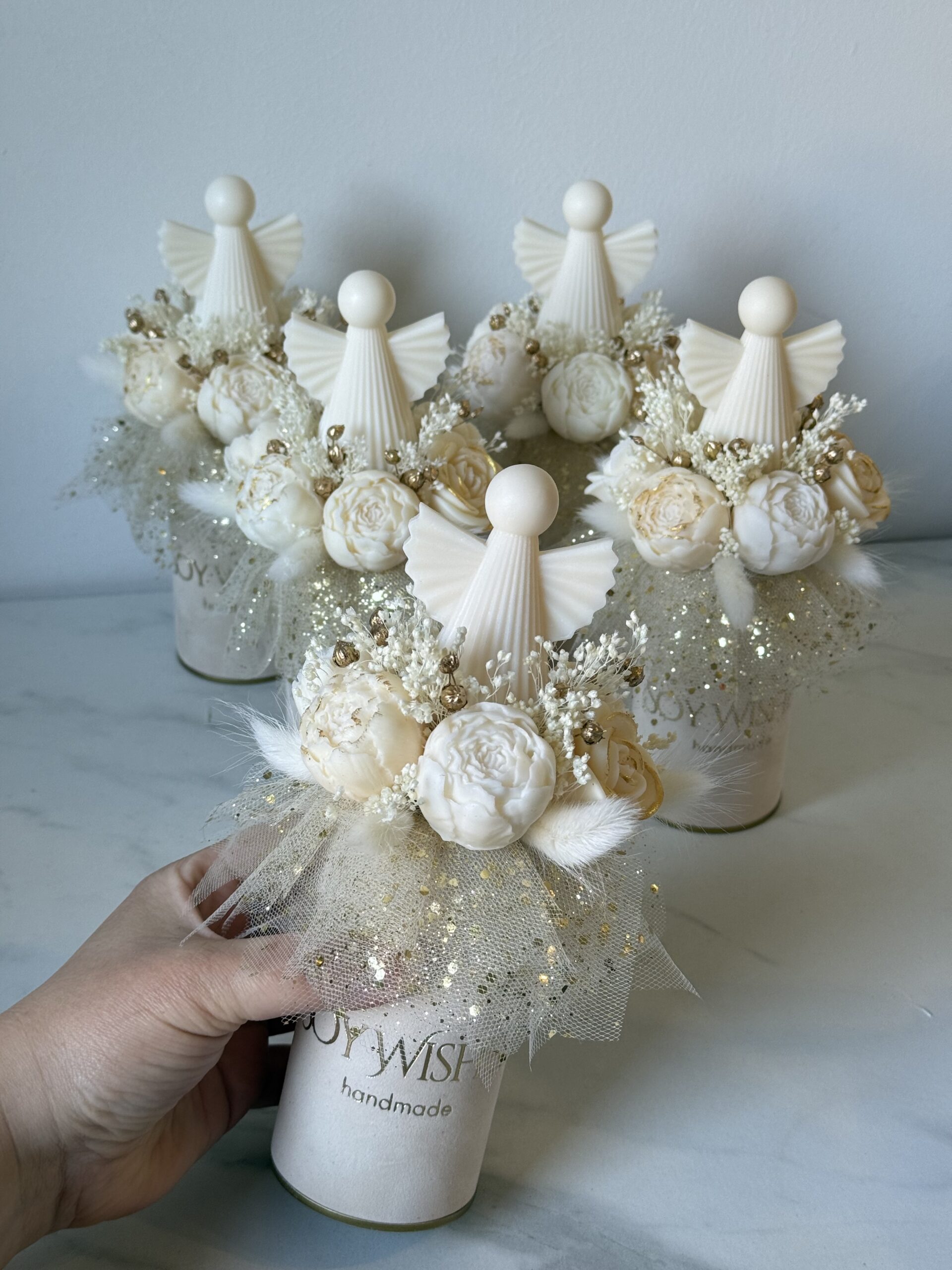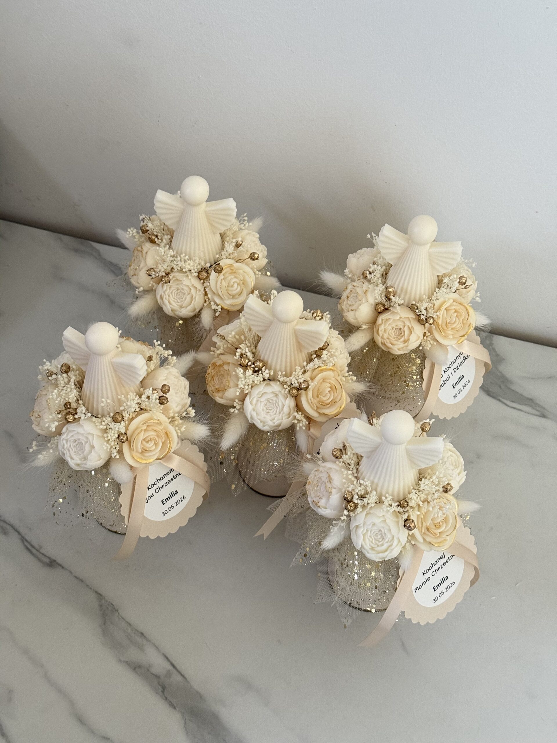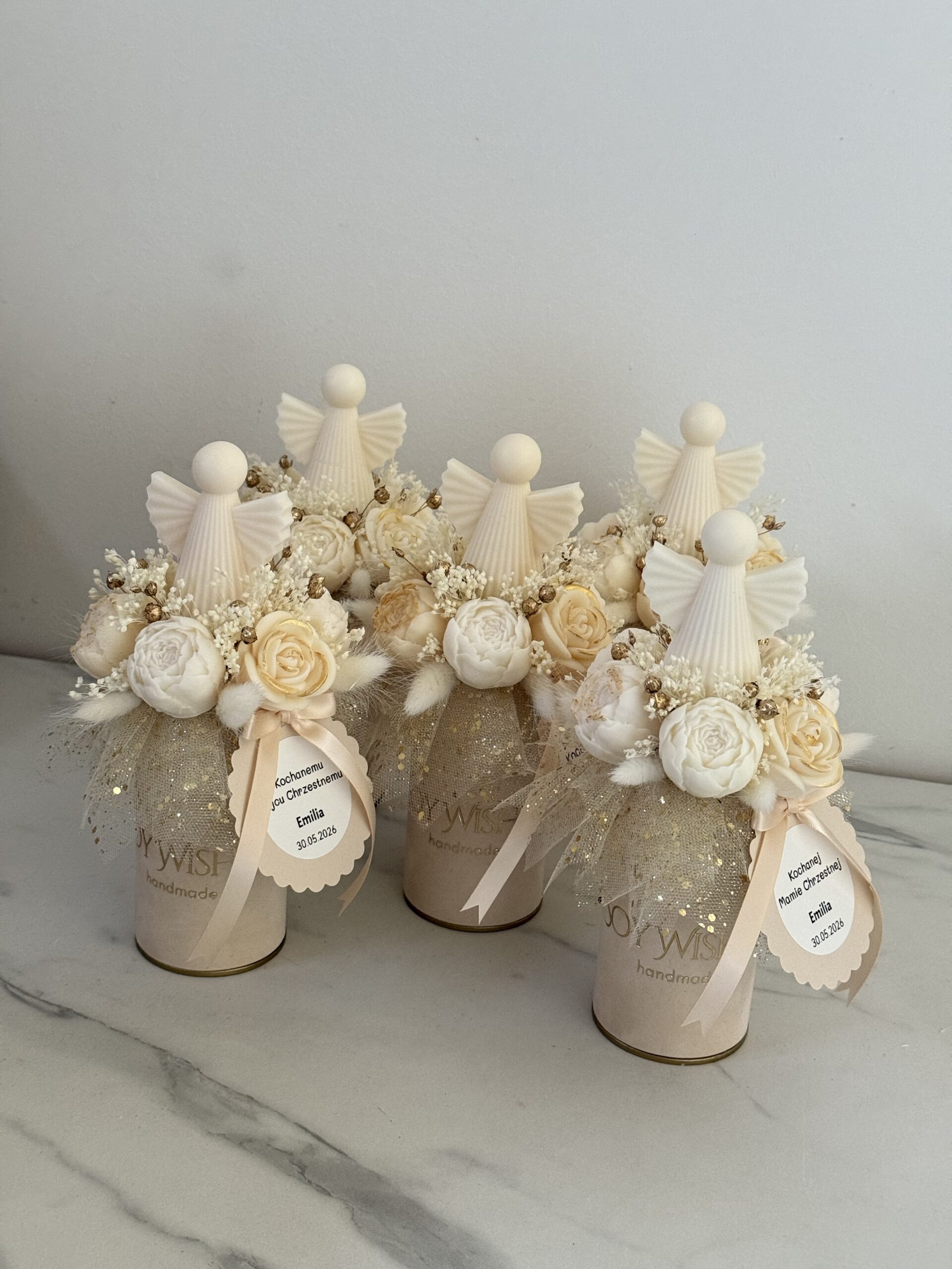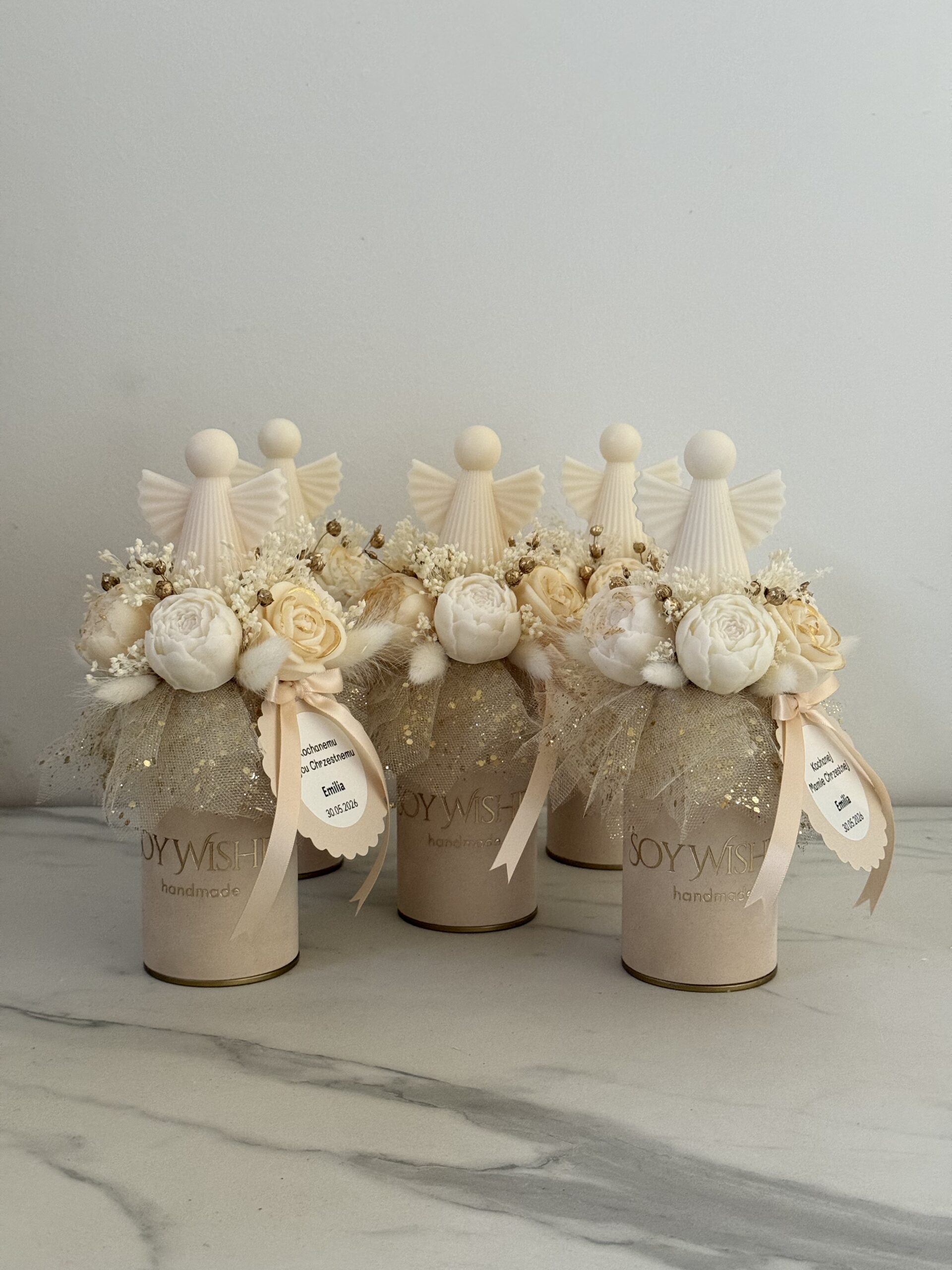 Niebanalna kompozycja z naturalnego wosku sojowego dopełniona suszonymi i stabilizowanymi roślinami.